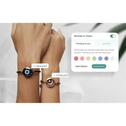 All Functions Built for Love Enjoy more sweet functions with your loved one via the Totwoo App. Have a private chat and send love letters effortlessly. Your love bracelet also reminds you of important dates and calls, with customizable lights and vibrations.